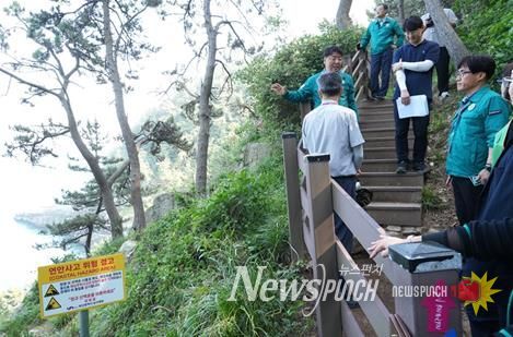 뉴스펀치 박상훈 기자 | 부산 남구은 여름철 자연재난에 대비하기 위하여 우리구의 관광명소인 이기대 해안산책로(해맞이 소공원에서 치마바위 구간) 약 2.2km를 도보로 점검하였다.