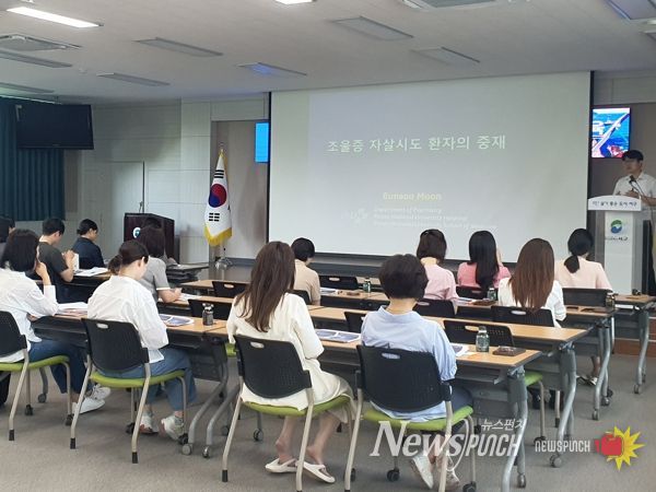 이번 교육은 정신건강복지센터 문은수 센터장과 생명사랑위기대응센터 차은빈 팀원이 강사로 나서 각각 ▲조울증 자살시도 환자의 중재 ▲양극성 장애환자의 사례관리 전략 수립에 관하여 다양한 현장 사례와 실제 경험을 토대로 강연했다.