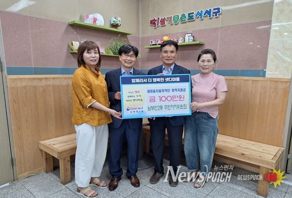 뉴스펀치 박상훈 기자 | 부산 서구 남부민2동 주민자치위원회는 14일 남부민2동 새마을지도자협의회 새마을자율방역단에 방역지원금 100만 원을 전달하며, 관내 해충 피해 방지 및 주민 건강 증진을 위해 봉사하는 단원들을 격려했다.