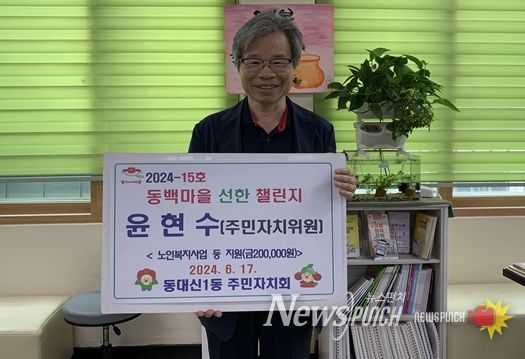 뉴스펀치 박상훈 기자 | 부산 서구 동대신1동 주민자치회에서 추진하는 '동백마을 선한챌린지사업'에 윤현수 주민자치위원이 참여하여 노인복지사업 등에 20만 원을 지원했다.