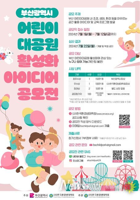 뉴스펀치 박상훈 기자 | 부산시는 '어린이대공원 활성화 방안 아이디어 공모전'을 열고, 오는 7월 1일부터 12일까지 총 12일간 참가자를 모집한다고 밝혔다.