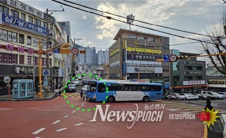 또한, 사상구의 경우에는 노상주차장 미폐지로 인근 교차로에 설치돼 있는 버스정류장을 이전하지 못해 어린이 등 버스승객이 [사진 1]과 같이 교차로로 나와 위험하게 승하차하고 있어 노상주차장을 폐지하고 버스정류장을 이전토록 요구했다.