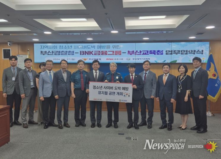 뉴스펀치 박상훈 기자 | 부산광역시교육청은 17일 오후 부산경찰청 동백홀에서 부산경찰청, BNK금융그룹과 청소년 사이버도박 예방을 위한 업무협약을 체결했다.