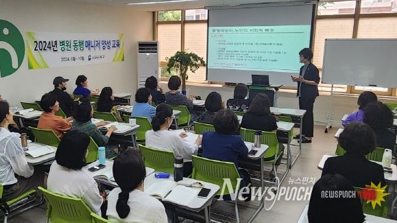의료서비스 전문가의 강의로 진행되는 이번 교육은 병원동행 서비스의 개념, 주요 노인성 질환 이해와 돌봄, 안전관리, 병원 행정 처리절차, 사회복지서비스 등의 과정으로 진행된다. 아울러, 교육수료자를 대상으로 별도 시험을 통해 병원동행매니저 자격증이 발급된다.