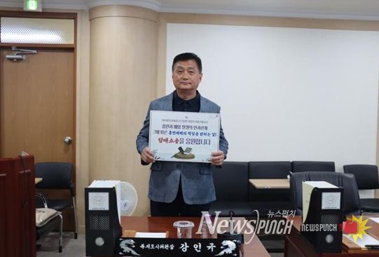 뉴스펀치 박상훈 기자 | 부산 중구의회 강인규 복지도시위원장이 19일 부산 영도구 의회 신기삼 의원의 지목을 이어받아, 국민건강보험공단이 진행하는 ‘담배소송 응원 챌린지’에 동참했다.