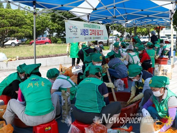 뉴스펀치 박상훈 기자 | 부산 강서구 새마을부녀회는 최근 강서구청 광장에서 이주여성과 함께하는 사랑의 고추장 담그기 행사를 열고, 장애인, 무의탁 노인 등 복지 사각지대에 있는 220세대에 고추장을 전달했다.