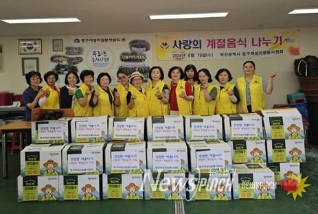 뉴스펀치 박상훈 기자 | 부산 중구여성자원봉사원회는 지난 19일 관내 취약계층 대상 ‘사랑의 계절음식 나누기’활동을 펼쳤다.