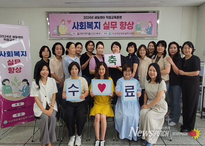 뉴스펀치 박상훈 기자 | 서구 여성새로일하기센터는 6월 19일, 직업교육훈련 ‘사회복지 실무 향상’ 수료식을 가졌다.