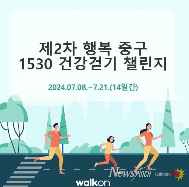 뉴스펀치 박상훈 기자 | 부산 중구에서는 오는 7월 8일부터 7월 21일까지 걷기 앱 워크온을 활용한 ‘제2차 행복 중구-1530 건강 걷기’챌린지를 운영한다.