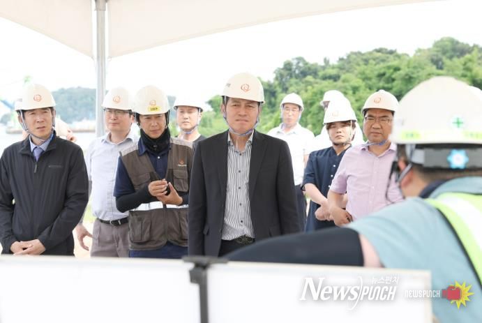뉴스펀치 김성남 기자 | 김정헌 인천 중구청장이 지난 20일 ‘영종에서 청라 연결도로(제3연륙교)’ 영종 1공구 현장을 방문했다.