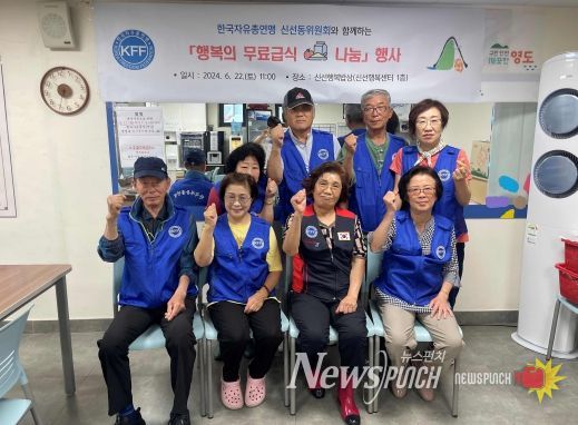 뉴스펀치 박상훈 기자 | 한국자유총연맹 신선동위원회는 지난 6월 22일 신선행복밥상(중복길 458)에서 행복의 무료급식 나눔 행사를 진행했다.