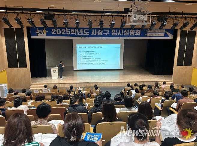 뉴스펀치 박상훈 기자 | 부산 사상구는 6월 22일 오후 2시 부산도서관 모들락 극장에서 권혁제 강사(부산일과학고등학교 교장)와 EBS 입시 대표 정제원 강사(숭의여자고등학교 교사)를 초청해 2025학년도 입시설명회를 학생과 학부모들의 뜨거운 관심 속에 성황리에 개최했다.
