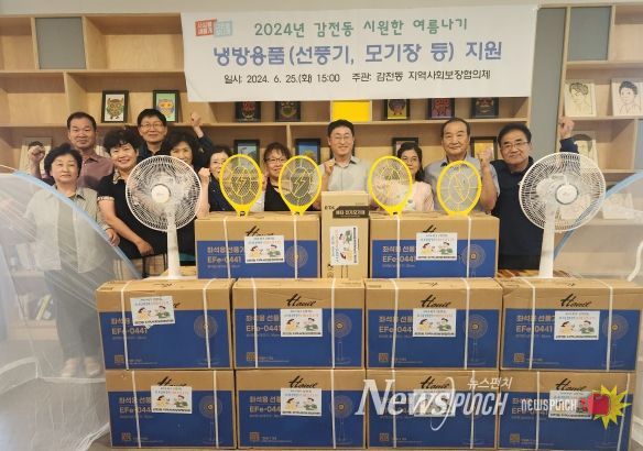 뉴스펀치 박상훈 기자 | 사상구 감전동 지역사회보장협의체는 지난 25일 관내 취약계층 80세대에 300만원 상당의 냉방용품(선풍기, 원터치 모기장, 전기 모기채)을 지원했다고 밝혔다.
