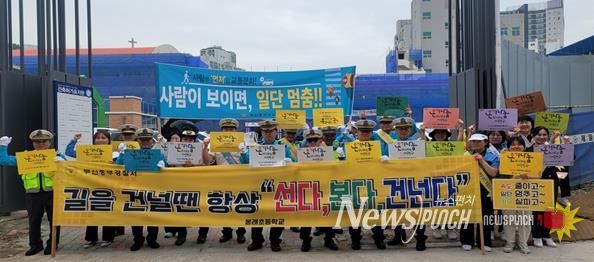 뉴스펀치 박상훈 기자 | 부산 중구자원봉사센터는 지난 25일 봉래초 녹색어머니회, (사)전국모범운전자연합회 부산지부 중부지회, 중부경찰서 관계자 등 30명과 중구지역 어린이들의 안전한 통학로 확보와 등교길 안전한 보행을 위해 온기 나누는 중구 교통안전 캠페인을 실시했다.