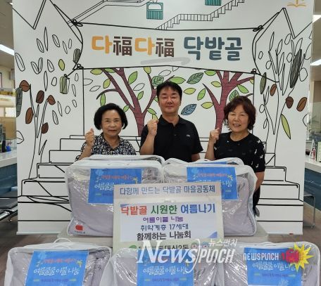 뉴스펀치 박상훈 기자 | 동대신2동 함께하는 나눔회는 지난 25일, 건강하고 시원한 여름나기의 일환으로‘닥밭골 여름쿨쿨 이불나눔’사업을 추진하여 복지통장을 통해 관내 취약계층 17세대에게 전달하고 이웃사랑을 실천했다.