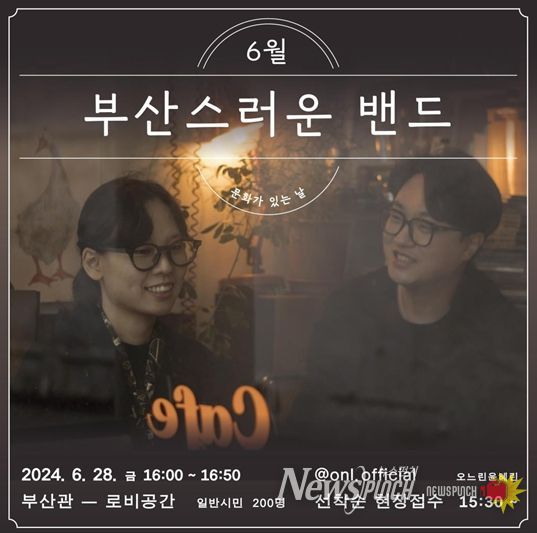 뉴스펀치 박상훈 기자 | 부산시립박물관은 내일(28일) 오후 4시 부산박물관 부산관 1층 로비에서 6월 문화가 있는 날 공연으로 '부산스러운 밴드: 어쿠스틱편'을 개최한다고 밝혔다.