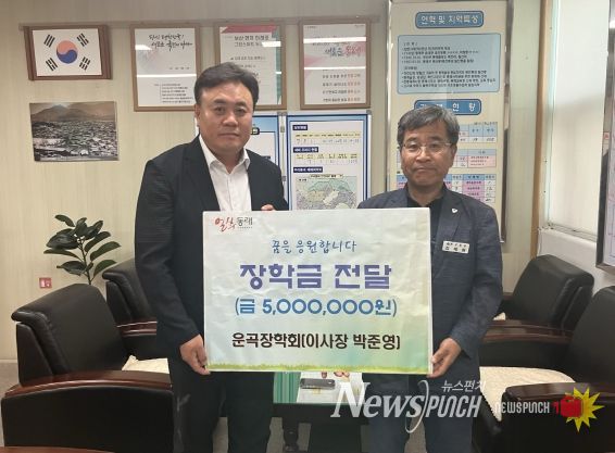 뉴스펀치 박상훈 기자 | 부산 동래구 복산동은 지난 21일 (재)운곡장학회에서 관내 사회취약계층 청소년 10명에게 1인당 50만원의 장학금(총500만원)을 전달했다고 밝혔다.