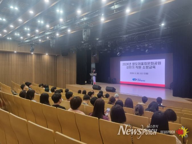 뉴스펀치 박상훈 기자 | 영도구 영도문화예술회관은 6월 26일 문화예술회관 절영홀에서 영도어울림문화공원 직원 대상 소방교육을 실시했다.