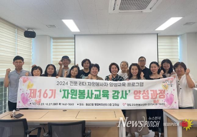 뉴스펀치 박상훈 기자 | 영도구자원봉사센터는 지난 6월 27일 동삼2동행정복지센터 강당에서 제16기 자원봉사교육강사 양성과정 수료식을 개최했다.