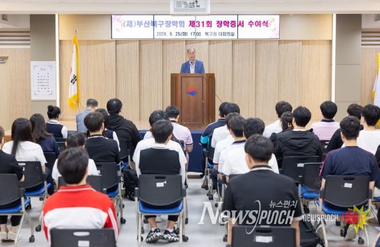 뉴스펀치 박상훈 기자 | (재)부산북구장학회는 지난달 25일 부산북구청 대회의실에서 고등학생 49명에게 장학증서와 장학금 약 2450만원을 전달했다.