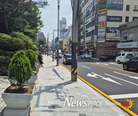 뉴스펀치 박상훈 기자 | 부산 남구가 남부교육지원청 앞 보도확장공사를 지난 2024년 6월 24일 준공했다.