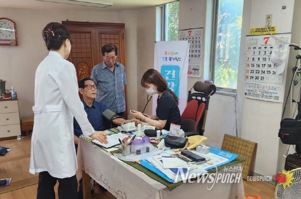 뉴스펀치 박상훈 기자 | 부산진구 양정1동 주민센터 ‘우리동네 간호·복지팀’에서는 7월 4일 현대2차아파트 경로당과 양정현대2차 할머니경로당을 방문하여 찾아가는 건강·복지 이동상담실을 운영했다.