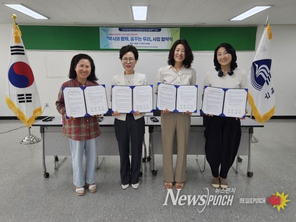 뉴스펀치 박상훈 기자 | 부산 동래구 사직2동 지역사회보장협의체는 지난 3일 복지통장, 관내 한우리 독서토론논술과 업무협약을 체결하고 '역사와 함께, 꿈꾸는 우리'사업을 진행한다고 밝혔다.