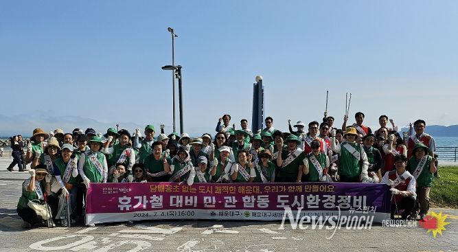 뉴스펀치 박상훈 기자 | 해운대구는 지난 4일, 미포에서 청사포 몽돌해변 구간 그린레일웨이 일대에서 담배꽁초 ZERO(제로)도시 해운대 만들기’의 일환으로 새마을 회원, 시그니엘 부산 직원 봉사단, 해운대구 직원 등 총 70여 명이 참여하여 우수기 및 휴가철 대비 민·관 합동 환경정비를 진행했다.