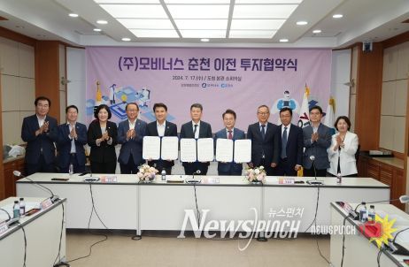 시에 따르면 17일 오전 9시 20분 강원특별자치도청 본관 소회의실에서 춘천시, 강원특별자치도, ㈜모비너스(대표 한병채)는 고밀도집적회로기판 제조공장 신설 투자협약을 체결했다.