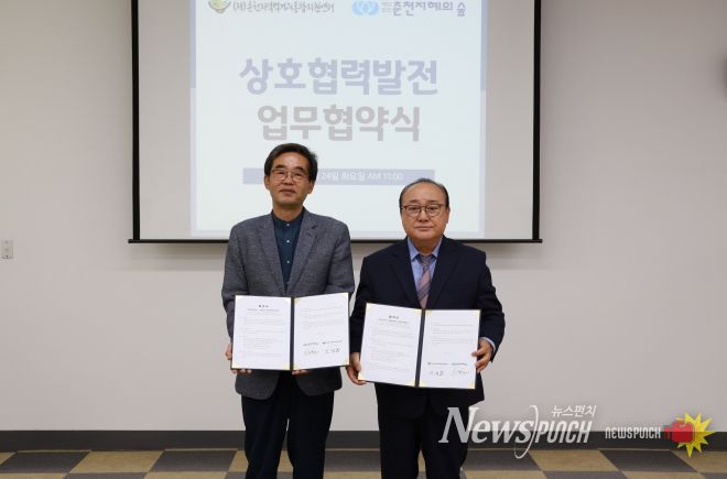 뉴스펀치 김호정 기자 | (재)춘천지혜의숲과 (재)춘천지역먹거리통합지원센터는 7월 24일, 춘천지역 신중년 및 시니어세대 복지향상과 춘천시 농업인의 권익신장을 위한 업무협약을 체결했다.