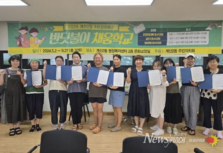 뉴스펀치 김성남 기자 | 인천광역시 계양구 계산2동 주민자치회는 지난 5월 21일부터 7월 23일까지 운영한 ‘반딧불이 채움학교 환경토탈공예 마스터 과정’을 성황리에 종료했다고 밝혔다.