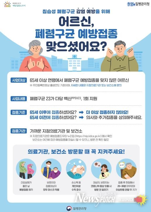 뉴스펀치 유동국 기자 | 익산시가 65세 어르신(1959.1.1.부터 12.31. 출생자)을 대상으로 '폐렴구균 23가' 백신 무료 접종을 8월 한 달간 집중 실시한다고 29일 밝혔다.