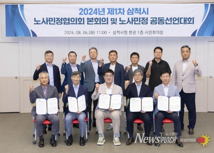 뉴스펀치 김호정 기자 | 삼척시가 8월 6일 삼척시청 시민회의장에서 노·사·민·정 협의회 회의를 갖고 삼척형 상생·협력 일자리 사업의 성공적인 수행을 위한 ‘삼척시 노·사·민·정 공동선언문’을 발표하며 협력을 다짐했다.