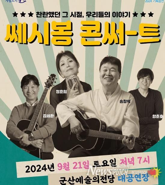 뉴스펀치 유동국 기자 | 세월이 흘러도 변치 않는 목소리로 그 시절 낭만을 노래하는 쎄시봉 친구들이 9월 21일 군산을 찾는다.