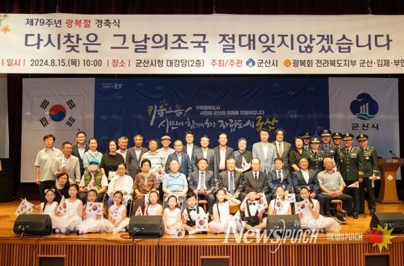뉴스펀치 유동국 기자 | 제79주년 광복절 경축식이 15일 군산시청 대강당에서 열렸다.
