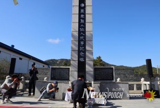 뉴스펀치 고서아 기자 | 11월 2일 목요일 암태도소작인항쟁기념탑에서 소작쟁의 승리 100주년을 추모하는 기념식이 열렸다. 신안군이 주최하고 신안군농민운동기념사업회가 주관하였으며, 신안군 항일농민운동 독립유공자 후손과 암태도 소작쟁의 참여자 후손, 암태도 주민 등 150여 명이 기념식에 참석했다.