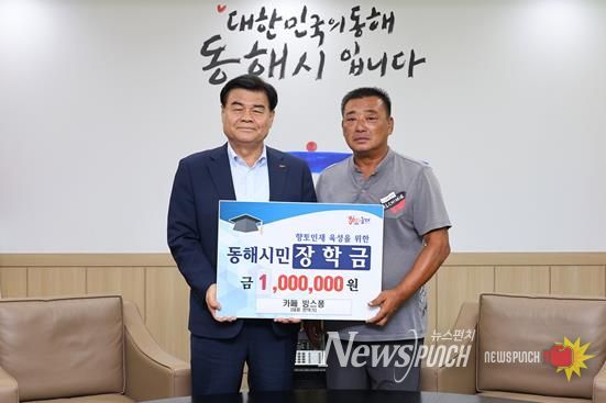 뉴스펀치 김호정 기자 | 카페 빙스퐁은 지난 8월 23일 지역의 인재들을 지원하는 데 힘쓰고자 동해시민 장학금 일백만원을 전달했다.
