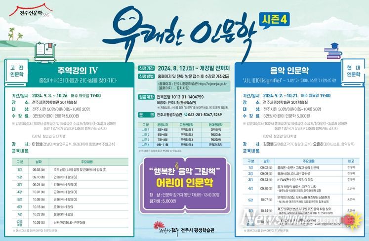뉴스펀치 유동국 기자 | 전주시가 시민들이 인문학을 통해 행복한 삶을 살 수 있는 지혜를 배울 수 있는 인문교육 강좌를 운영한다.