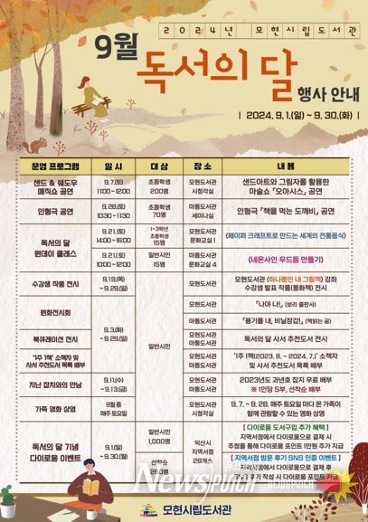 뉴스펀치 유동국 기자 | 익산시 모현시립도서관이 9월 독서의 달을 맞아 독서 문화 진흥을 위한 다양한 프로그램을 운영한다고 26일 밝혔다.