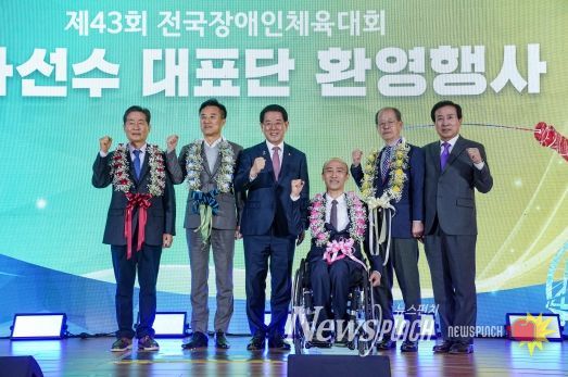 뉴스펀치 고서아 기자 | 제43회 전국장애인체육대회를 하루 앞둔 지난 2일, 참가선수 대표단 환영행사가 신안비치호텔에서 열렸다.