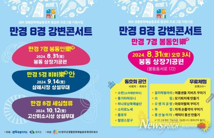 뉴스펀치 유동국 기자 | 사)완주군생활문화예술동호회네트워크가 만경강을 주제로 ‘만경 8경 강변콘서트’를 연다.