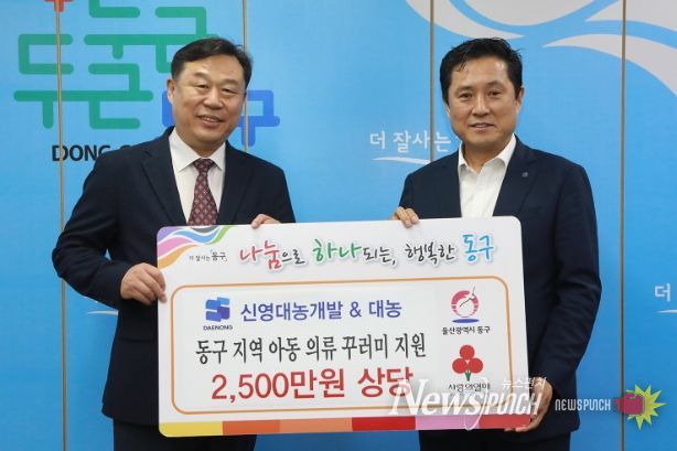 뉴스펀치 임정용 기자 | 신영대농개발 & 대농에서는 11월 3일 오후 4시 동구청에서 동구지역 아동을 위해 2,500만원 상당의 의류 2,000벌을 지원했다.