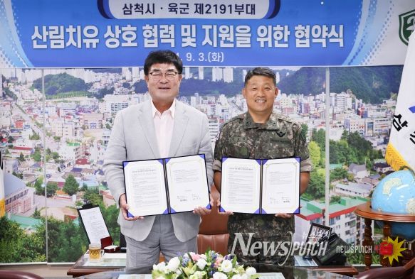 뉴스펀치 김호정 기자 | 삼척시가 9월 3일 육군 제2191부대와 ‘산림치유 상호 협력·지원 협약’을 맺고 산림치유와 관련하여 상호 협력하기로 했다.