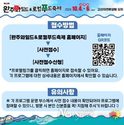 사전접수는 9월 6일부터 30일까지 축제 홈페이지를 통해 가능하며 자세한 사항은 완주와일드·로컬푸드축제추진위원회로 문의하면 된다.