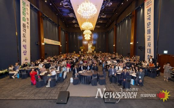 뉴스펀치 유동국 기자 | 익산시는 6일 웨스턴라이프호텔에서 '제15회 전국문해교사대회'를 성황리에 개최했다. 행사는 7일까지 진행되며, 전국 문해교사와 관계자 등 280여 명이 참여한다.
