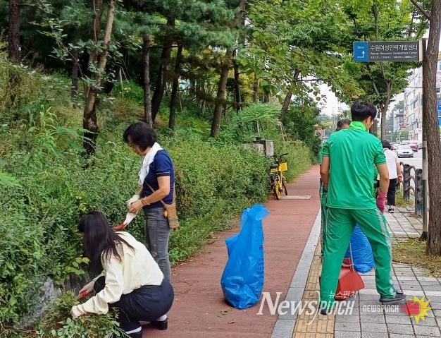 뉴스펀치 탁상훈 기자 | 수원시 영통구 영통3동은 지난 19일 쾌적한 보행 환경을 조성하고자 잡초 제거 등 환경정비를 실시했다.