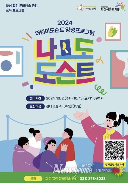 뉴스펀치 탁상훈 기자 | (재)화성시문화재단이 2024 어린이 도슨트 양성 프로그램 '나도 도슨트!' 2기에 참여할 어린이 교육생 15명을 10월 2일부터 13일까지 모집한다.