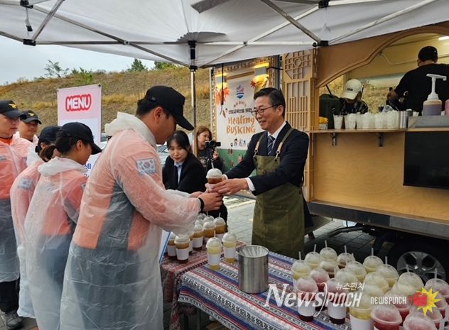 권혁민 본부장은 지난 14일 충청소방학교에서 충청소방학교 이전 등 업무로 지친 교직원과 소방공무원이 되기 위해 훈련 중인 신임 교육생 280여 명과 함께 ‘충남다원예술연합회 동음’의 음악공연을 관람하고 직접 음료를 나눠주며 응원을 전했다.