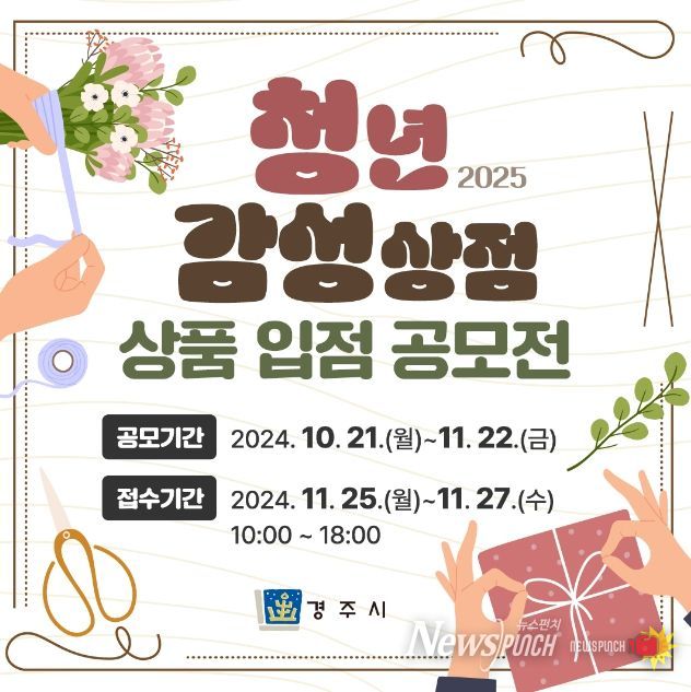 뉴스펀치 김종율 기자 | 경주시는 지역 청년 예술가들의 상품 발굴과 지원을 위해 ‘2025 청년감성상점 상품 입점 공모전’을 개최한다고 22일 밝혔다.