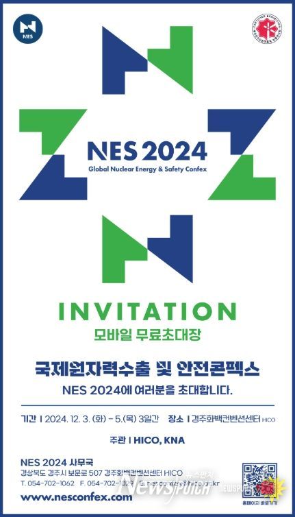 뉴스펀치 김종율 기자 | 국내 유일 원전 수출 및 안전 전문 국제전시회인 ‘NES 2024’가 오는 12월 3일 화요일부터 5일 목요일까지 경주화백컨벤션센터와 한국원전수출산업협회 공동주관으로 개최된다.